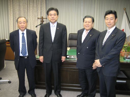 5.まだまだ会議が続く。「農政基本小委員会」で緊急コメ対策について、「都市と農山漁村の共生・対流を進める調査会」において、都会の子供たちの農村体験等について、議論に参加する。そして、その合間に、中田勝久・南あわじ市長に同行(写真)して、上川陽子・少子化対策特命大臣、増田寛也・総務大臣に地域の実情を説明、地元の要望をお願いする。夕方には、国会対策委員会(国対)との打ち合わせ、アフリカのガボンのジャーナリストとの意見交換などなど、まだまだ続きます。