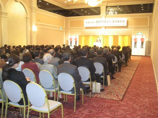 4.委員会での採決終了後、急いで羽田空港に向かう。今日は夕方から、大阪後援会「康風会」の特別セミナーである。ゲスト・スピーカーに中川秀直元幹事長をお招きしているが、お迎えしなければならない私自身が「テロ対策特別委員会」での採決のため遅刻である。約250名の方々にご参加頂いているが、まさに「公務」ゆえに理解して頂くしかない。皆様に、今の私の仕事や、経済政策などをお話し、しばし懇談である。今般新たに、サクラクレパスの西村貞一社長に、大阪後援会「康風会」の会長にご就任頂いた。中小企業の税制など大変熱心に取り組まれておられ、たまたま姓も同じである。今後末長くご指導頂ければと願う次第である。