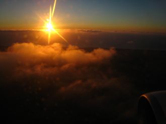 3.空港内で、ジェトロよりフランス情勢やアフリカ情勢についてブリーフを受け、いよいよ今回の最初のアフリカの訪問国、モロッコの首都ラバトに向かって出発である。エール・フランスの機内で軽く食事をし、夕方にラバト到着である。大西洋に沈む夕日がとても美しいが、まわりは砂漠である。