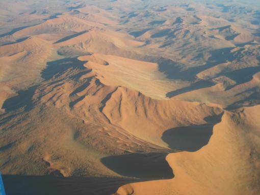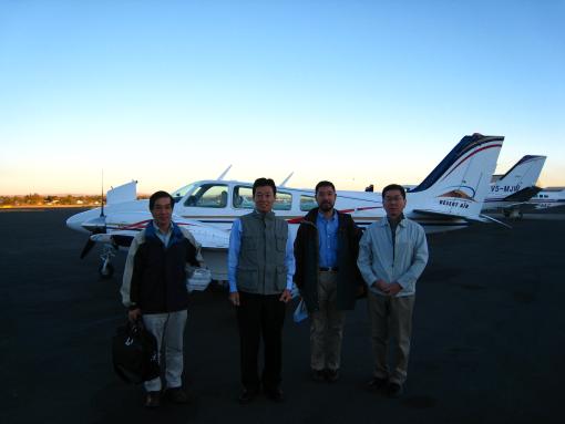 1.翌朝(8/22)は、朝5時半に起床。“デザート・エアー社”(砂漠航空社)の6人乗りセスナに乗り込み、有名な「ナミブ砂漠」の上空を越えて、スコーピオン亜鉛鉱山視察に向かう。 “赤い砂漠”ナミブ砂漠は本当に美しい。流線があざやかでずっと見続けた。さすがに30分も見ていると眠くなってきたが、その美しさは圧巻である。今回は残念ながら砂漠を歩いたり、ツアーをする時間はなかったが、将来また来てみたい場所の一つである。