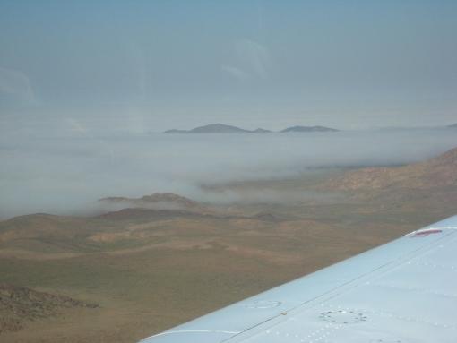 2.そうこうしているうちにスコーピオン鉱山に近づくが、残念ながら、雲(霧?)が濃く着陸できない。さすがここはアフリカである。こんなことではへこたれない。この霧のため、半分ぐらい戻ったところにあるリューデリッツの町にとりあえず着陸し、霧が晴れるのを待つ。といっても2時間くらいかかるとの予報であり、砂漠ツアーでもしようと、レンタカーなどあちこち電話するが、さすがに砂漠の真ん中、とても手配できない。