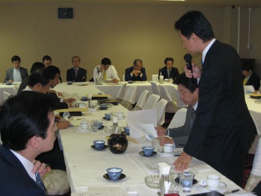 2.午前8時から「経済活性化税制議員連盟」で経済情勢の分析。私からは、「大企業が中小企業にしわ寄せ(コストダウン)を図ることで大きな利益を上げている。下請対策を含めた中小企業対策を充実させるべき」と発言した(写真①)。ゲストスピーカーの水野和夫氏(三菱UFJ証券経済調査部チーフエコノミスト)は中小企業のIT化などの支援とともに、「円高政策が大事」と主張された。原材料の仕入れ値の上昇が大きいにもかかわらず、中小企業は親企業(大企業)に価格転嫁できない、との分析であった。確かに、多少の円高なら大企業は対応できるから、仕入れ値を下げる意味では円高対策は中小企業の業績改善に有効な政策の一つかもしれない。