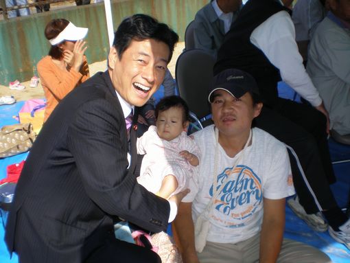 明石魚住住吉神社のお祭りで、松本隆弘県議とともに一杯。