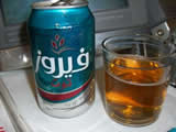 機内で出たビールとアップルジュースの混ざったようなノンアルコール飲料。スーダンとリビアではお酒は全く飲めません。