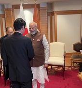 インド議連の会長としてモディ首相と再会。日印の関係強化を確認。